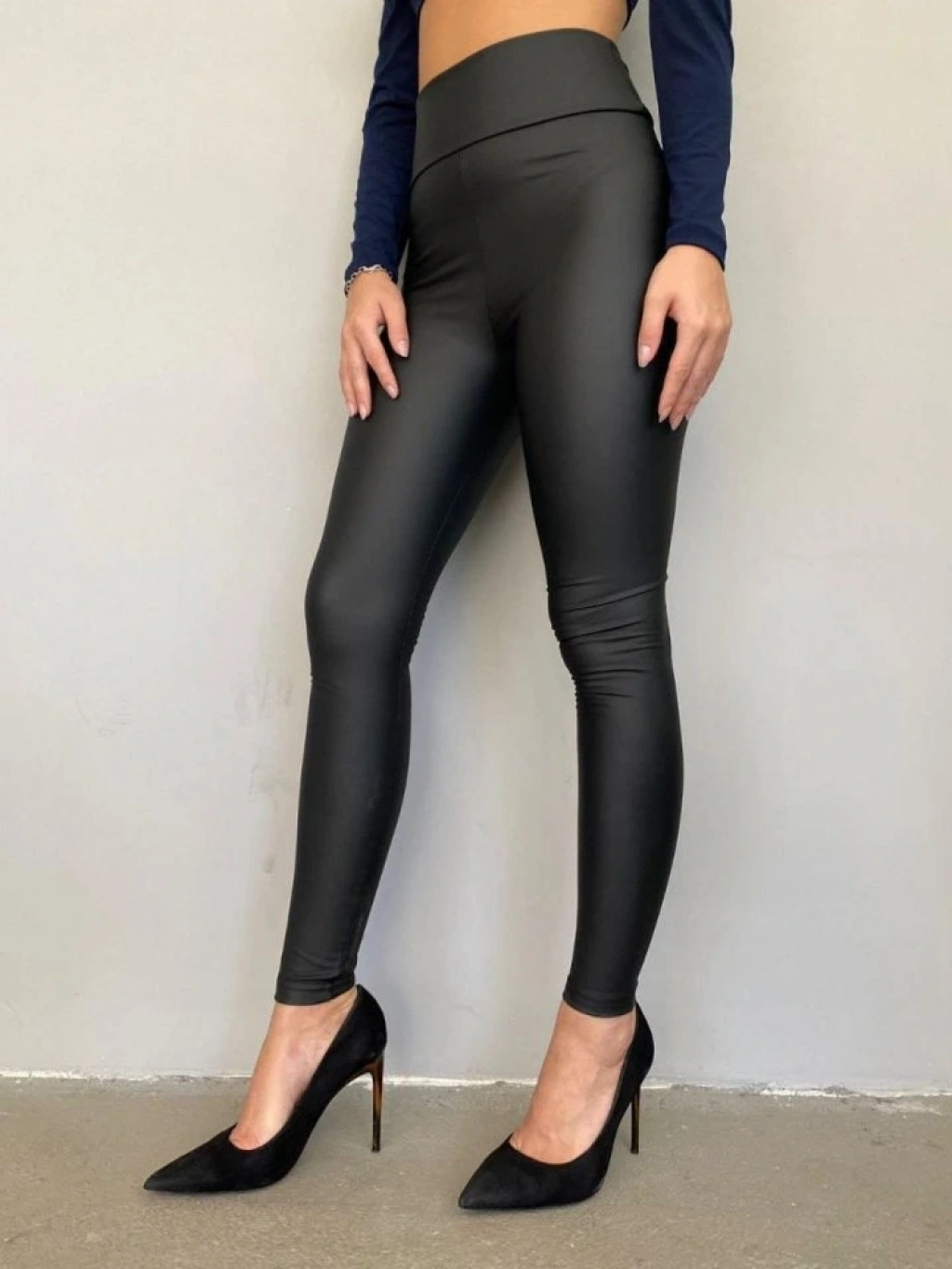 Yüksek Bel Toparlayıcı İçi Şardonlu Deri Tayt