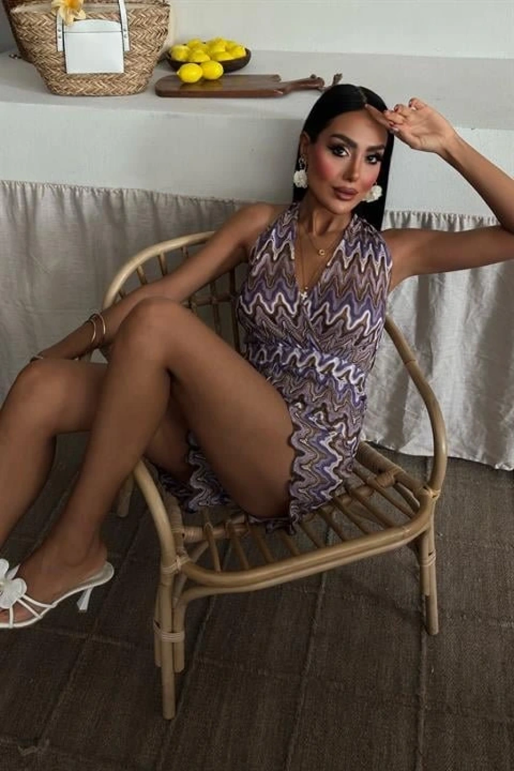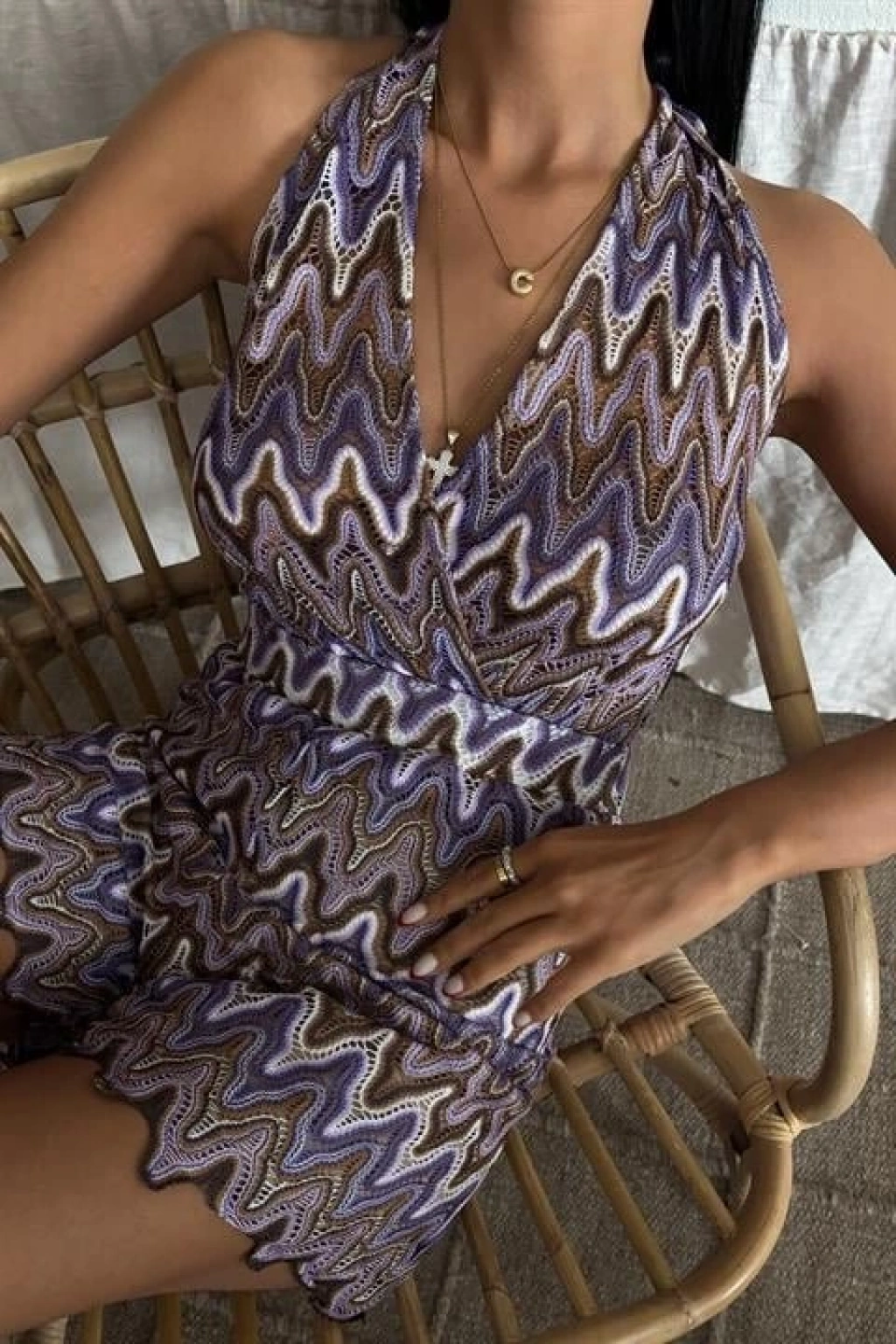 Zikzak Desenli Multi Renk Geçişli Mini Tulum 1365